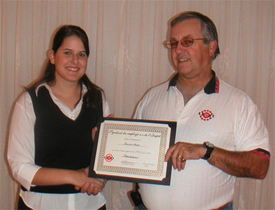 These photos were taken during the presentation of the $1000 UTE regional scholarship cheque and certificate by Denis Brunette, President of Local 10017 Montérégie to Geneviève Plante. Geneviève is the daughter of Louise Petit-Plante and of Pierre Plante, both members of the Montérégie Local for many years. The scholarship was offered as part of UTE's scholarship program. Thank you, Denis Brunette