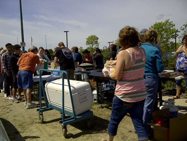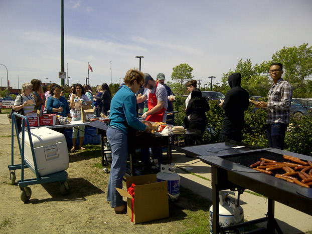 600 hotdogs were served to very supportive members and everyone signed a UTE postcard. 600 hot-dogs ont été servis aux membres appuyant et tous ont signé une carte postale du SEI.
