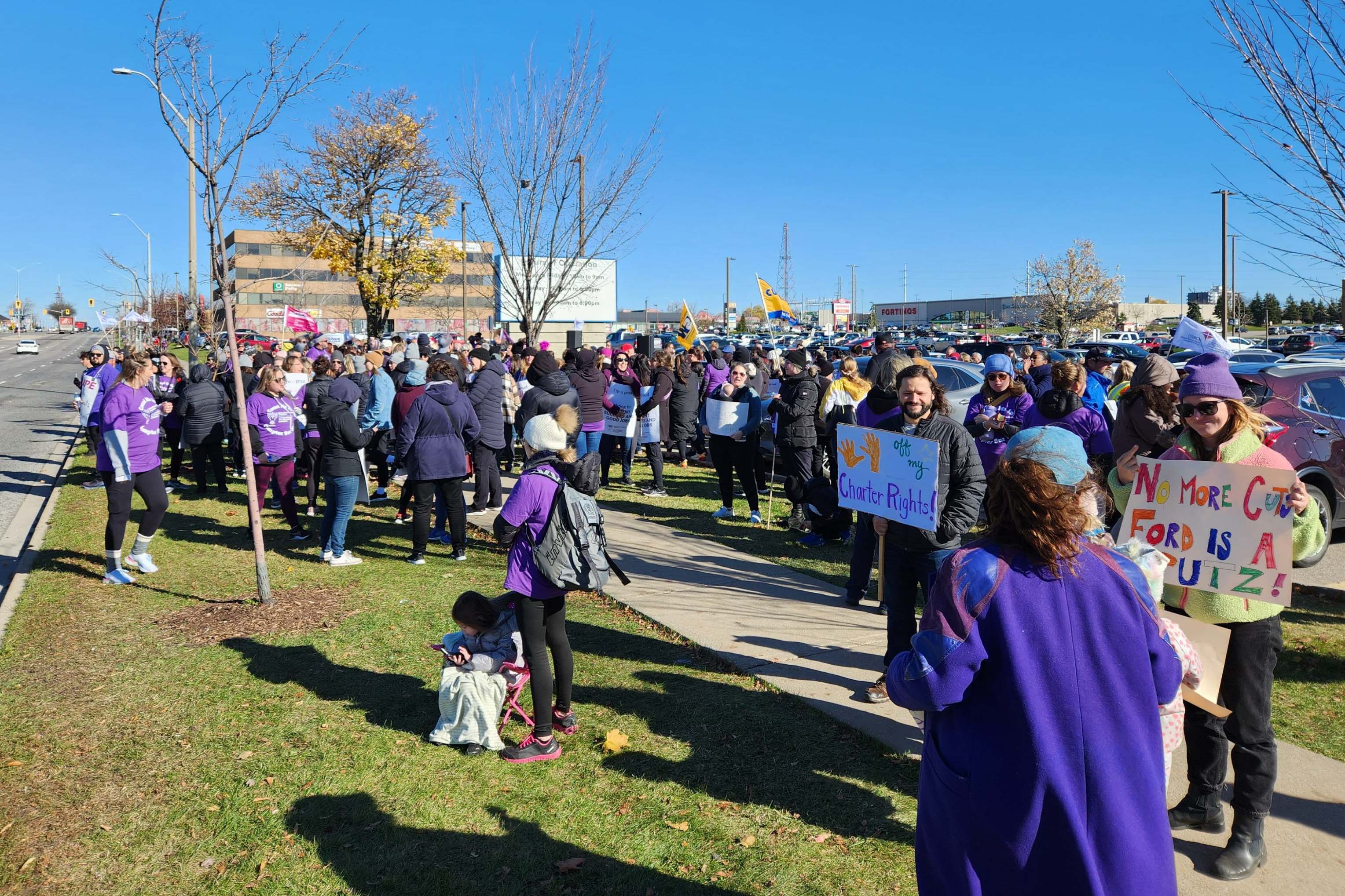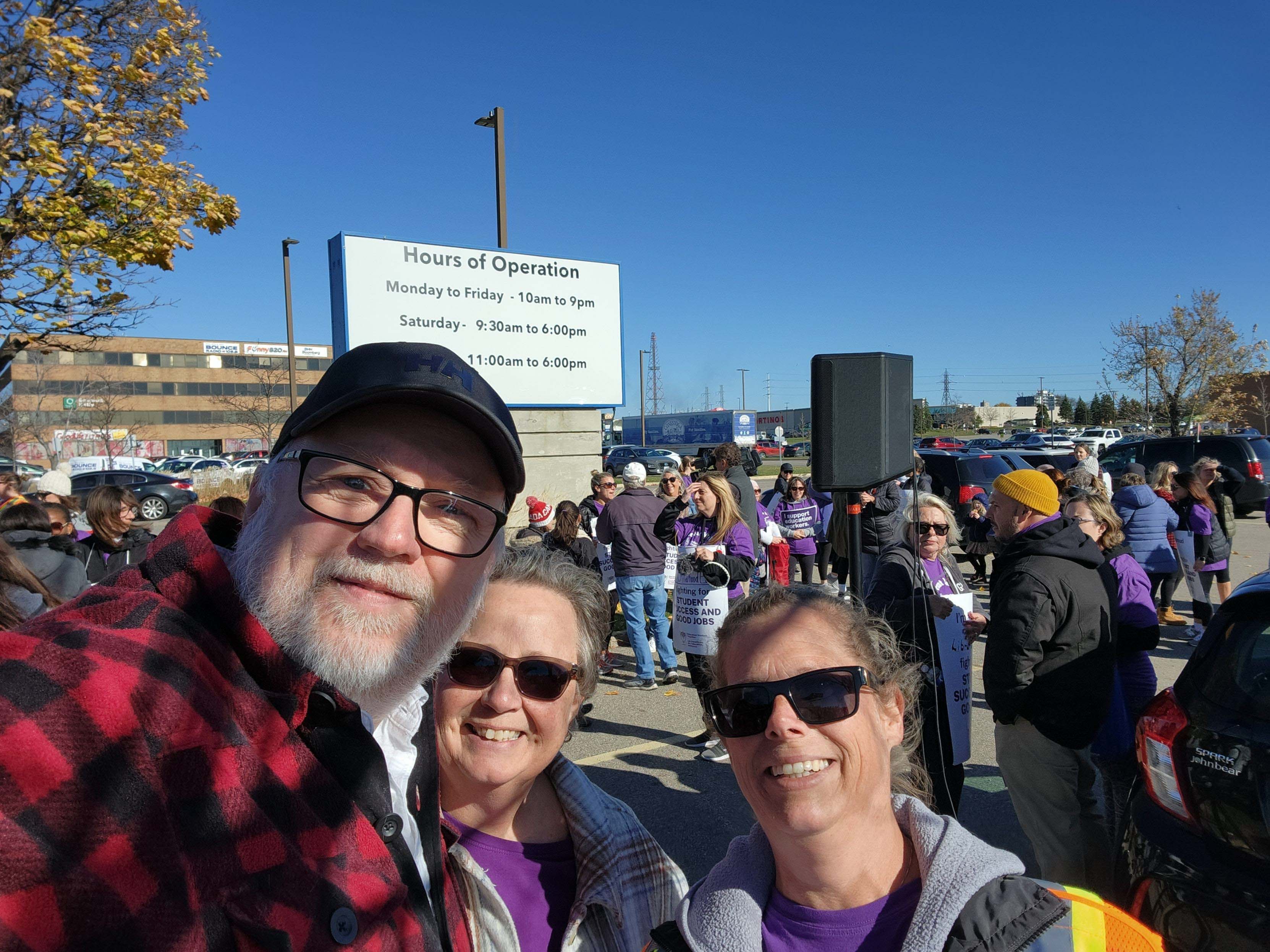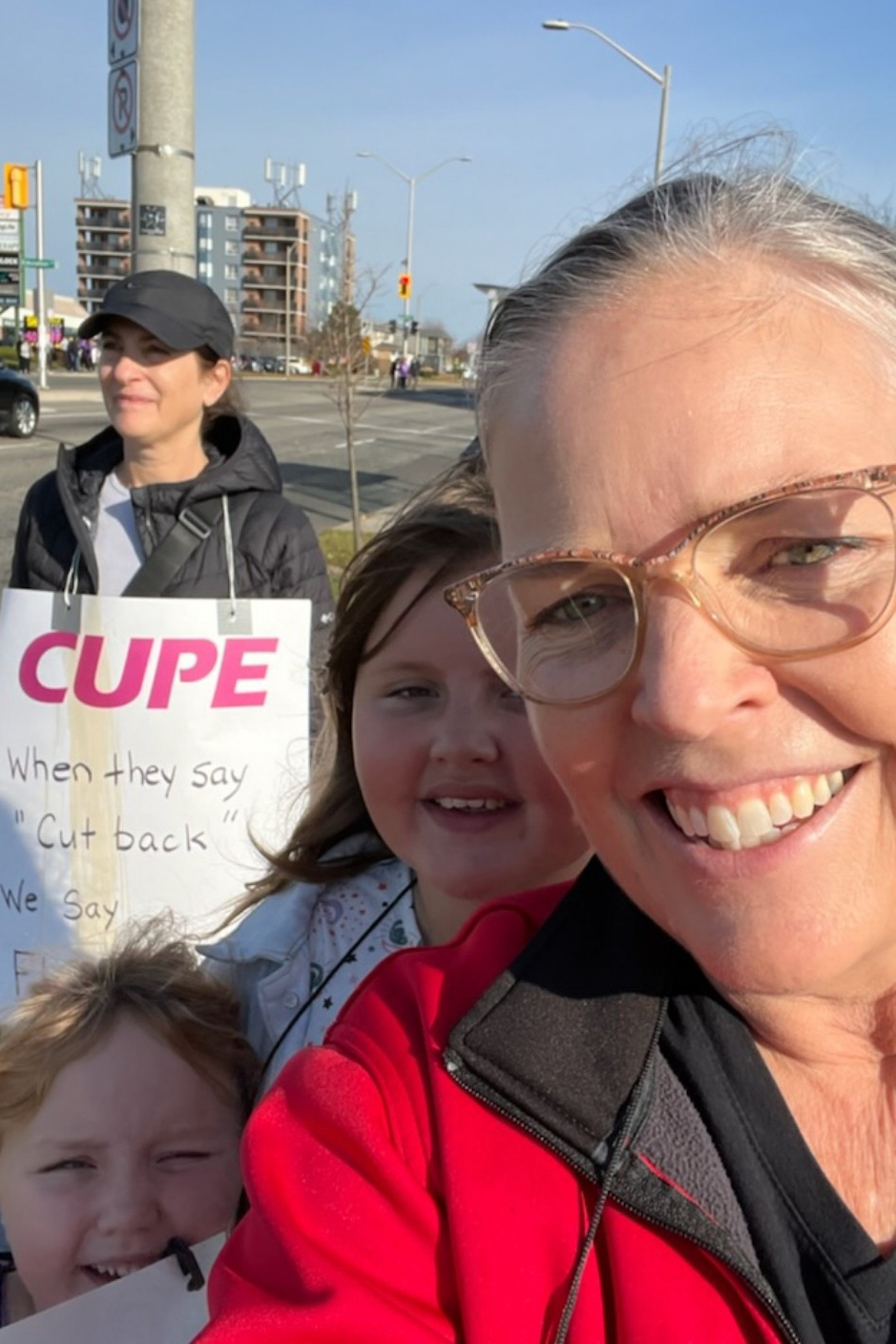 Gina Degner, 1st VP and two of her granddaughters joined a demonstration in support of CUPE education workers.