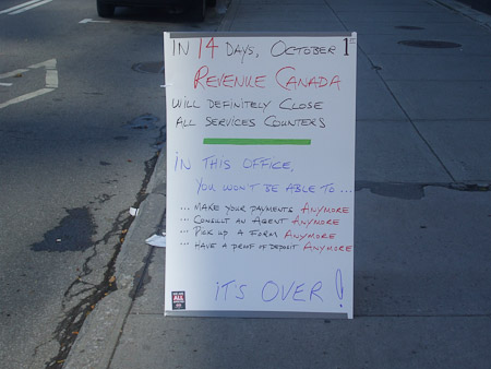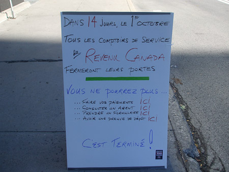 Demonstration concerning the closing of the cash and service counters in Montreal. / Mobilisation concernant la fermeture des caisses et comptoirs de service de Montréal.