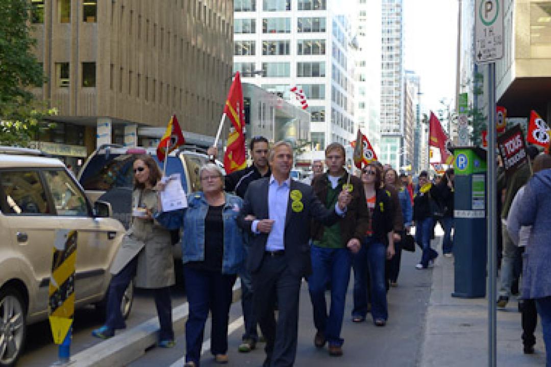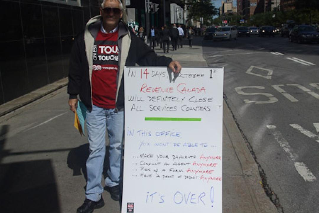 Image Demonstration concerning the closing of the cash and service counters in Montreal. / Mobilisation concernant la fermeture des caisses et comptoirs de service de Montréal. Locals Montréal
